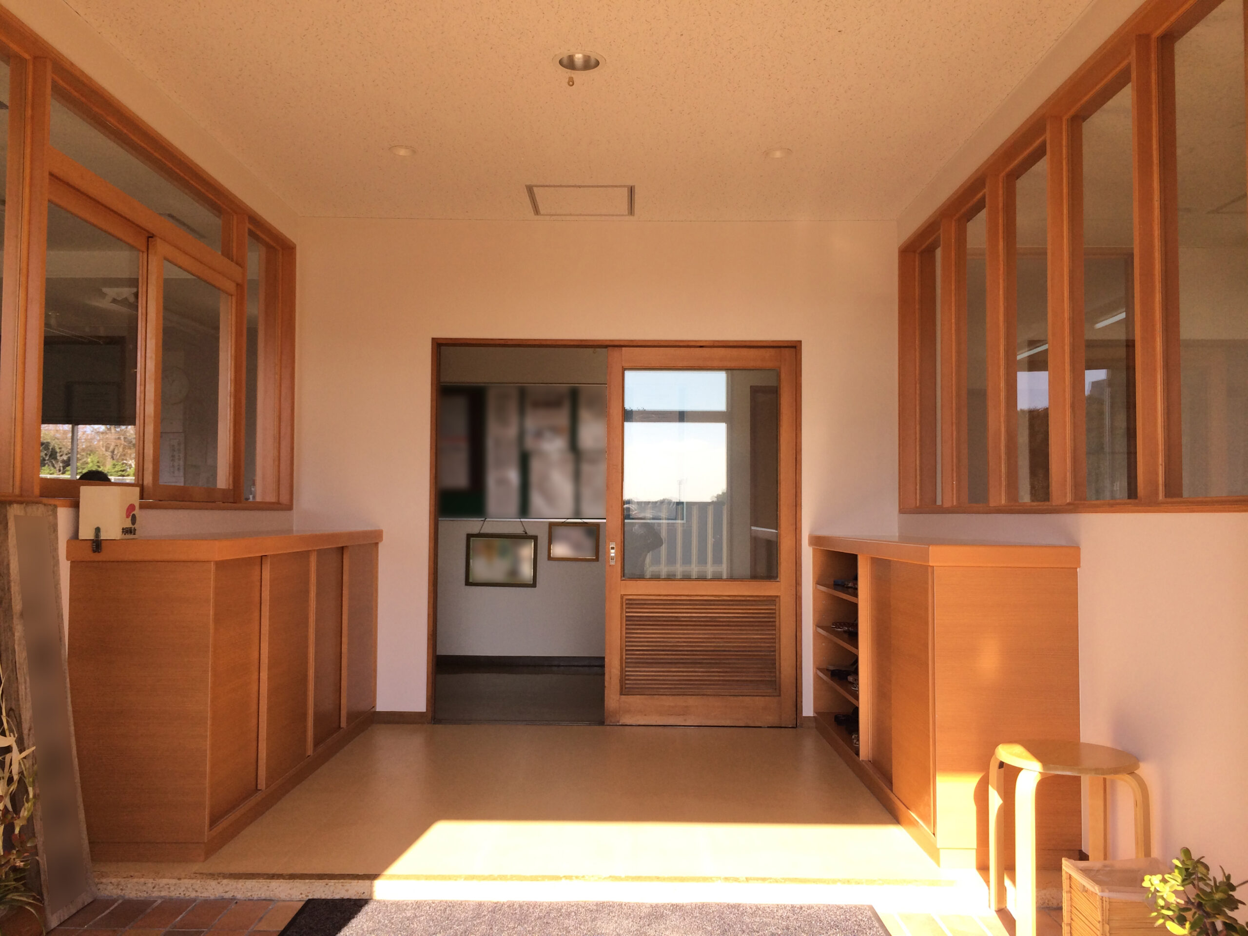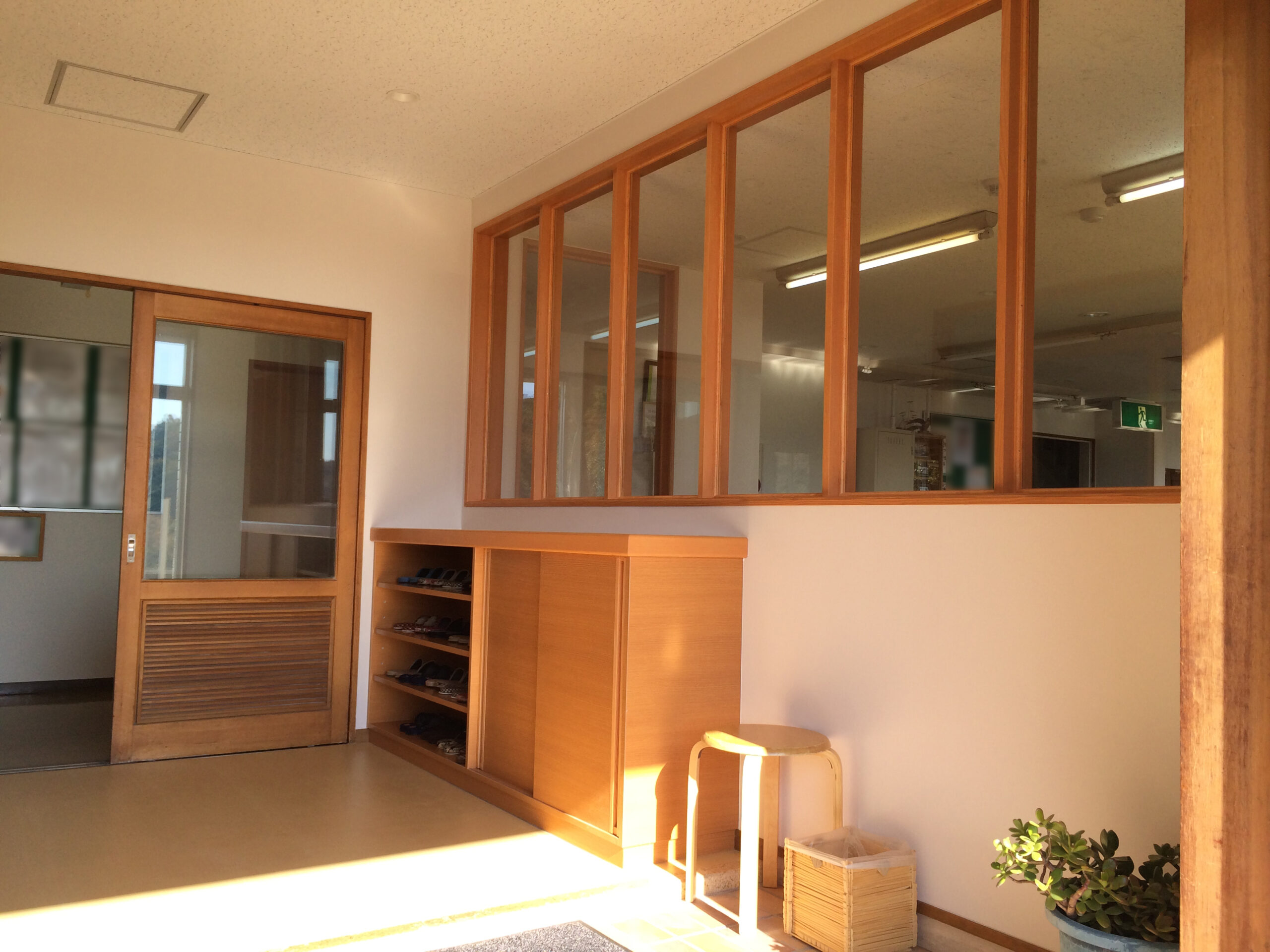 (改修工事前の写真) 児童福祉施設の改修工事をさせて頂きました。職員さんがいらっしゃる場所から利用者さんが集う場所の見渡しが悪いため、壁面に窓を設け見渡す事ができる様な工事依頼がありました。