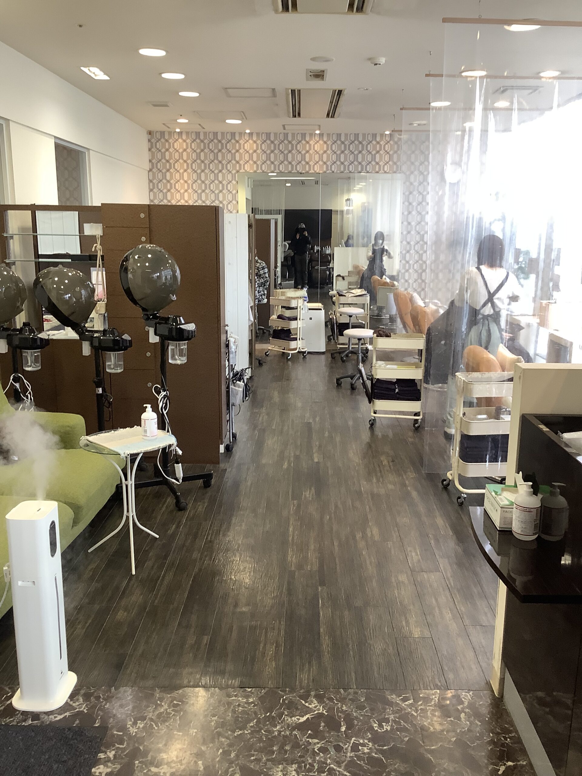 (改修工事前の写真) 10年以上ヘアサロンを営業していましたが、テナントビルの改修工事トラブルに伴う漏水により、内装が傷んでしまい急遽リフォーム工事を行う事になりました。 今回は、インテリアデザイナーの小畑典子さんがデザインをして下さいました。当社は内装工事をさせて頂きました。
